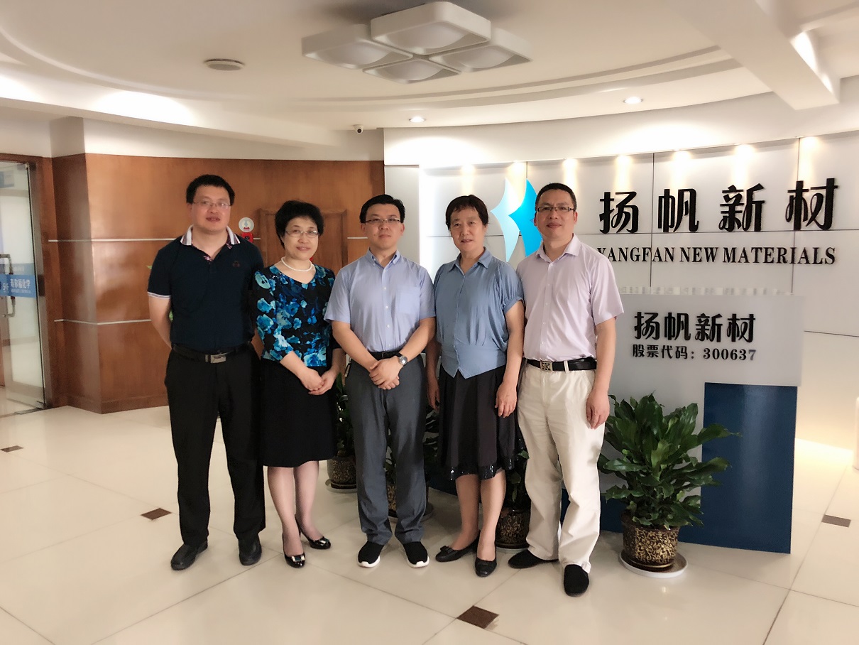 2018年5月16日上午,中國化工信息中心、全國精細化工原料及中間體行業協作組秘書長杜淑敏與副秘書長申桂英老師來我司進行走訪、調研、指導工作,浙江揚帆新材樊彬董事長、朱俊飛副總裁、技術總監吳紅輝先生等參加了交流活動。