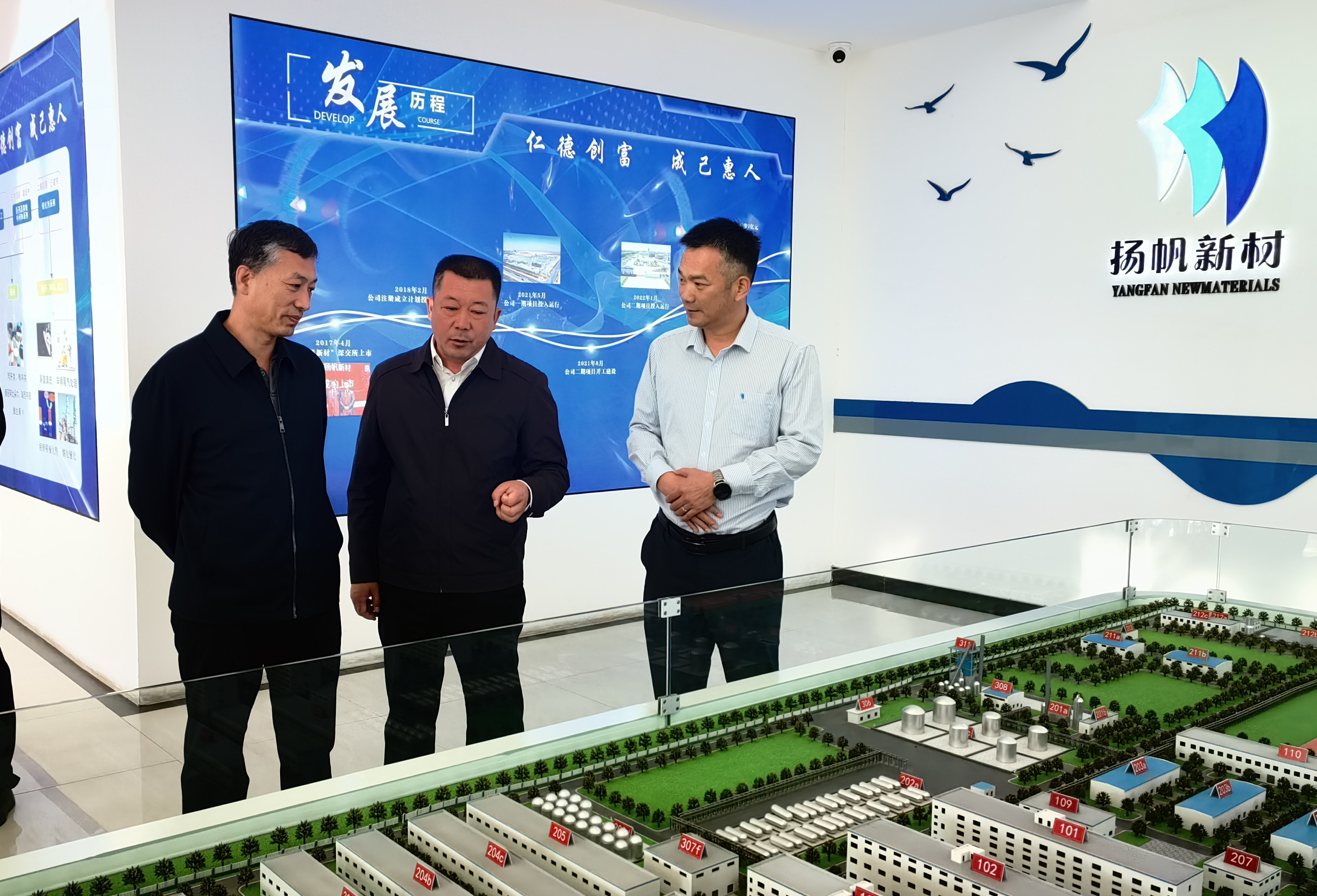 在公司展廳,包副盟長對公司的發(fā)展歷程、項目(產(chǎn)品)介紹、廠區(qū)規(guī)模和企業(yè)文化逐一進行了了解,揚帆新材常務副總裁劉輝圍繞公司產(chǎn)品、原料、市場以及發(fā)展現(xiàn)狀向工作組領(lǐng)導進行了詳細的匯報,包副盟長聽后,對企業(yè)的發(fā)展表示了肯定,并重點就企業(yè)發(fā)展過程中存在的困難以及需要政府解決的問題征詢了意見,鼓勵企業(yè)做好產(chǎn)品的同時對市場預期要充滿信心,特別強調(diào)企業(yè)生產(chǎn)一定要確保安全和環(huán)保這條底線,扎實推進企業(yè)又好又快發(fā)展。